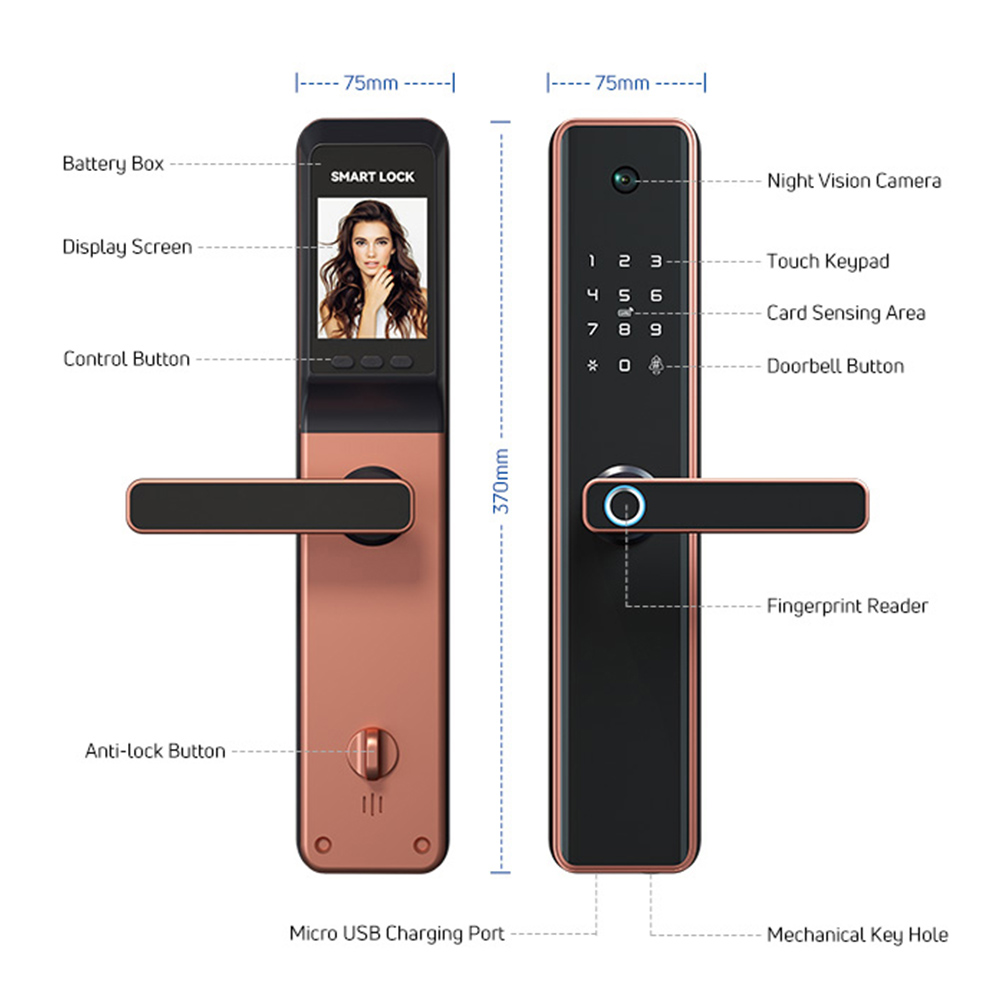| وظيفة | التحقق المتعدد المقاييس الحيوية، كلمة مرور مؤقتة، فتح القفل عن بعد عبر التطبيق، رنين الجرس |